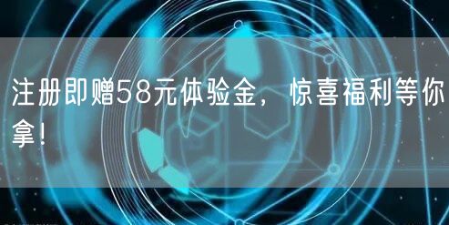 亲爱的朋友们,好消息来啦!现在注册我们的平台,即可获得价值58元的体验金,让你在第一次体验我们的服务时更加顺畅无阻。不仅如此,还有更多惊喜福利等你来拿,绝对让你物超所值!